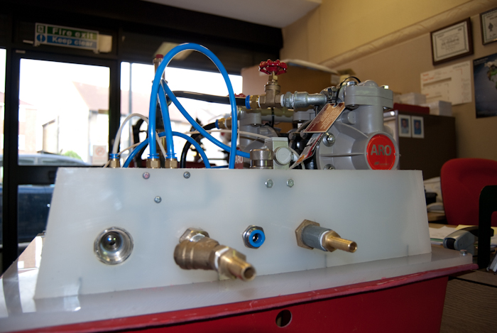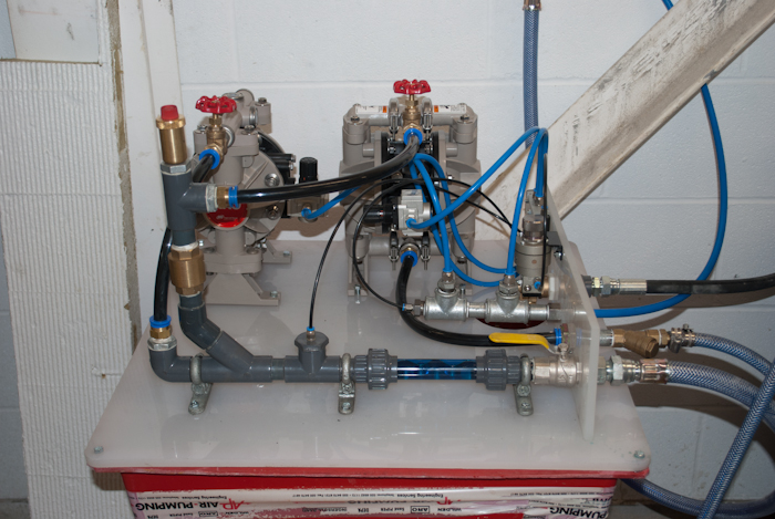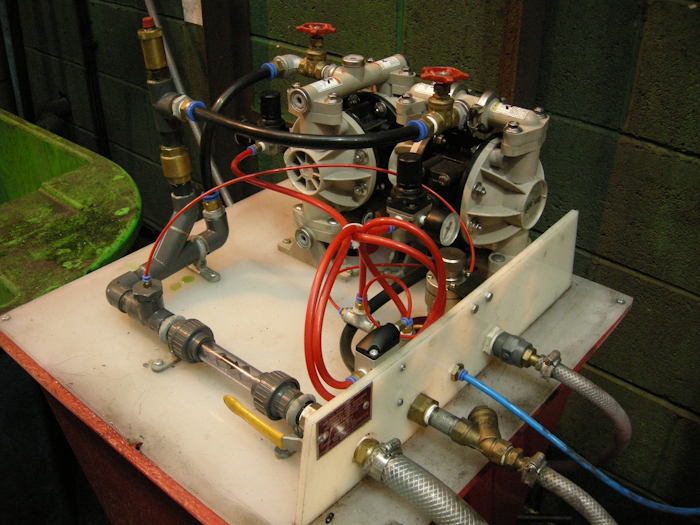 The VX200 is based on the original VX202 Quarter Inch Mixer, however is somewhat uprated, running on a 100% larger bore for greater delivery and efficiency along longer pipe lengths. Running two ½" bore pumps, this unit can mix anti-freeze and water for you at 77.3 litres per minute. Coupled with a full Varimix pipe work install from Air Pumping, mixed fluid can be dispensed at any position of your given choice.