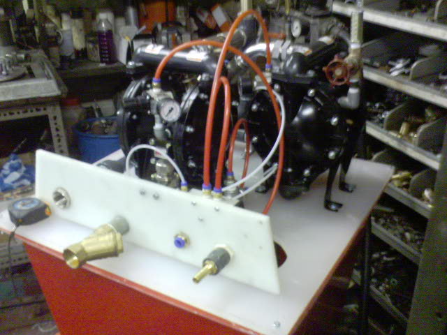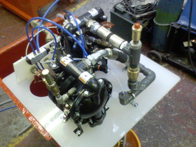 The VX201 is our largest production Varimix unit, designed with a 1" bore manifold and and equivalent pump units, this machine is well suited for the longest of pipe-runs. Running two 1" bore pumps, this unit can mix anti-freeze and water for you at 133 litres per minute. Coupled with a full Varimix install from Air Pumping, mixed fluid can be dispensed at any position of your given choice on a huge scale.